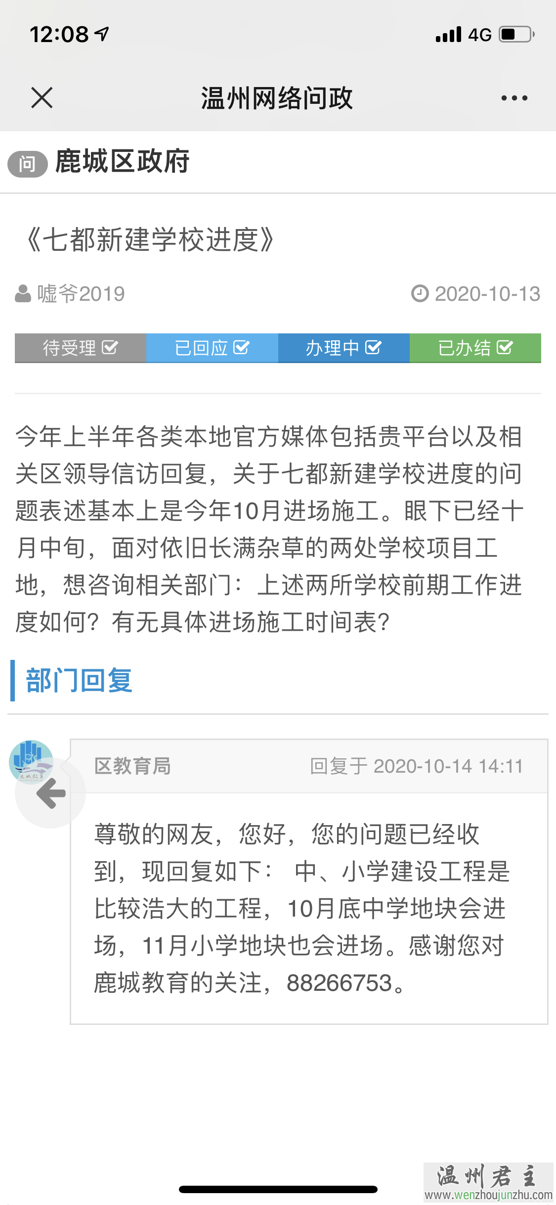 嘘爷2019向鹿城区政府问:七都新建学校问题